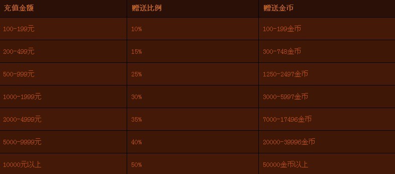 2、每次充值时根据当日充值总金额所在区间给予对应比例的赠送。