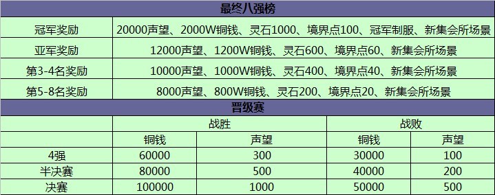 1、淘汰赛决出的8强将分4组,以每组2个帮派进行3局两胜制比赛,获得2胜的帮派晋级。