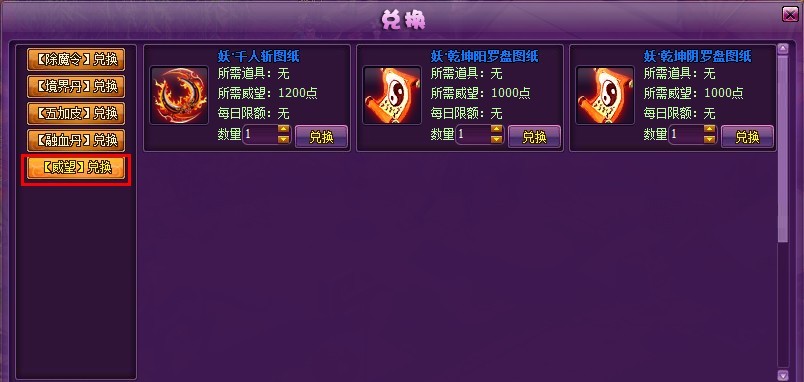 6. 兑换功能新增分类——用【威望】来兑换道具,威望可通过挑战屠龙副本获得