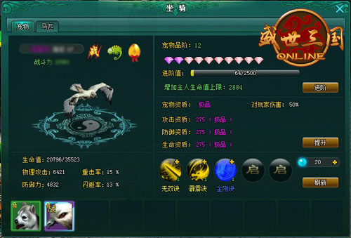点解打开陪游《盛世三国》宠物界面,玩家们可以对宠物资质进行查看,并可以提升进阶,宠物品阶的提升可以大大地提高宠物战斗力,并且对主人生命上限属性等有必然的影响。而宠物资质则是让宠物晋身成为神兽的重要因素,玩家们可以通过点击“提升”按钮对宠物进行资质提升,资质包括三大要素,分别是攻击资质,防御资质,生命资质,基础成长的强大对日后宠物每一等级将会有着深远的影响。