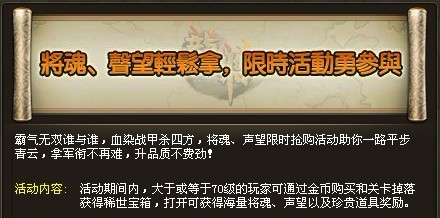 活动二:将魂、声望轻松拿,限时活动勇参与