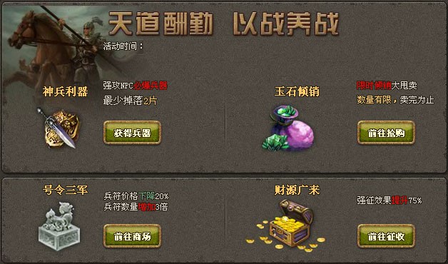 活动期间,强攻NPC必掉兵器碎片(仅限有几率掉落兵器的NPC)。