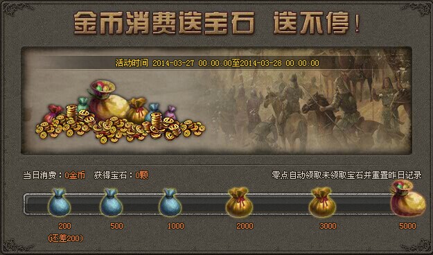 1) 每消费金币达到一定数目,就可以领取对应宝石礼包