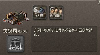 l.主城到82级 获得纺织局。当纺织局升到82级,可以通过制造纺织品给城市带来更多的收入。