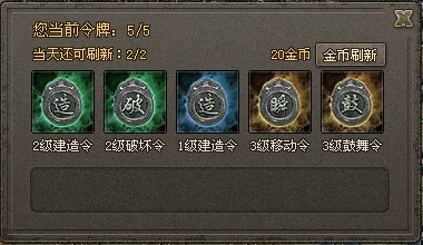 自动完成2个任务,每日领取2个免费军令,主城40级花费50金币获得。