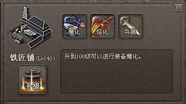 n.主城到101级 获得铁匠铺。可以用玉石魔化装备以及熔化装备获得玉石