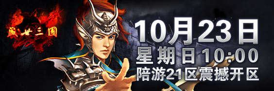 陪游《盛世三国》21区将于10月23日上午10:00震撼开启,与此同时,我们还为各位玩家准备了丰富的活动和好礼,助英雄们驰骋沙场!