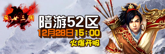陪游《盛世三国》52区将于12月28日下午15:00震撼开启,与此同时,我们还为各位玩家准备了丰富的活动和好礼,助英雄们驰骋沙场!
