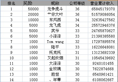 区服 名次 昵称 奖励
