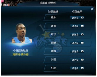 2、在预测大厅里可进行“今日赛事预测”、“球员表现预测”、“预测记录查询”等操作;