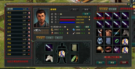 如何给武将装备道具?