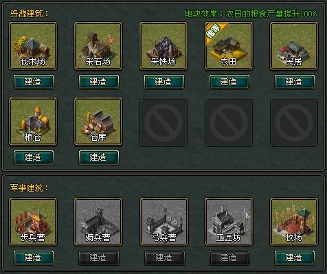 建造工匠坊可以招募攻城器械部队,而建造校场可以加快各兵种的招募速度。