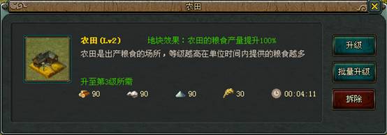 另外,为了方便玩家。《千军破》体贴的设计了建筑批量升级功能,玩家可以一次点击完成同类建筑的批量升级操作,省时又省力。