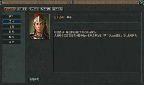 如果一次竞选中只有一名玩家参加竞选,则此玩家只要获得任意一人的投票即可上任,若没有获得任何投票,则本次势力选举失败。所属势力在这一次投票任期内没有丞相。