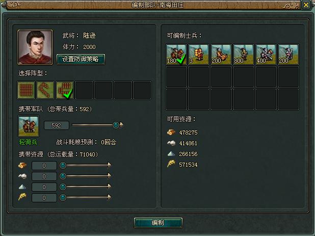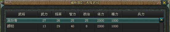 编制部队,首先需要确认领军武将,部队也只有在武将的率领下才可以四方征战。一支部队只能由一名武将率领,同时一名武将也只能率领一支部队。