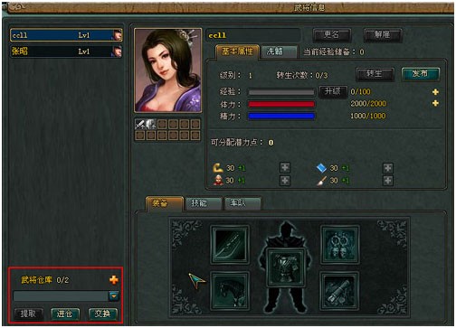 1)武将仓库是用来存储玩家暂不使用的武将的地方。